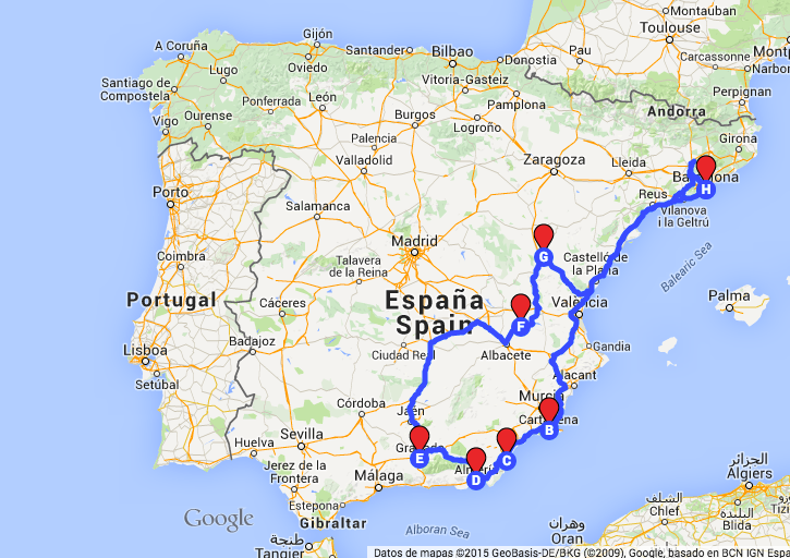 BCN – CARTAGENA – MOJÁCAR – ALMERÍA – GRANADA – FUENTEALBILLA – TERUEL – BCN
