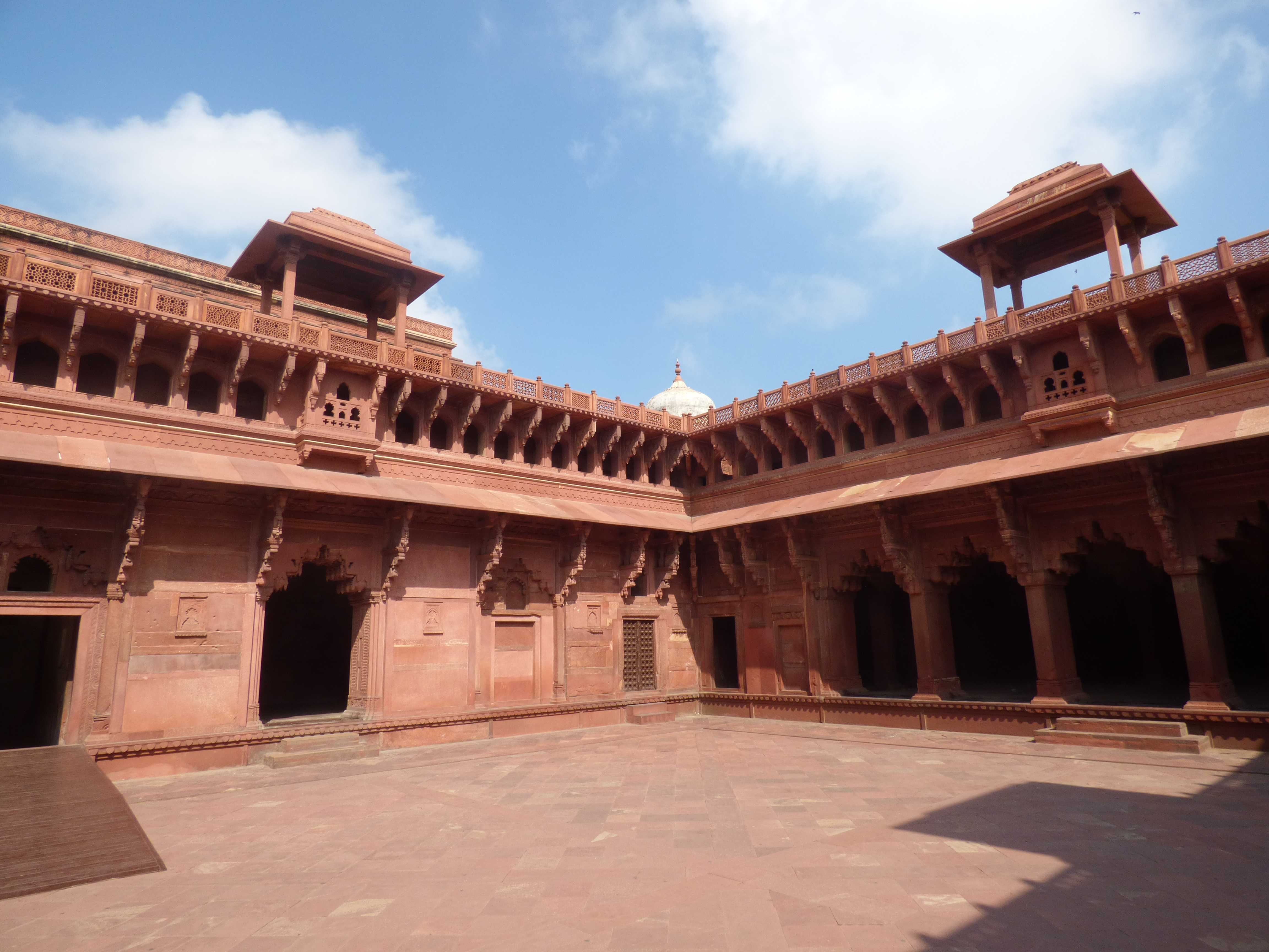 Sin duda es una de las cosas más increíbles que he visto. No me extraña que sea considerada una de las siete maravillas del mundo moderno. Flanqueado por dos mezquitas y detrás de un imponente jardín ahí se encuentra, el Taj Mahal, un mausoleo construido por una sola razón: el amor. A esa hora había poca gente, lo rodeé varias veces, hice decenas de fotografías, entré, leí su historia y me dejé asombrar. Luego aprovechamos el día y fuimos al Fuerte Rojo de Agra, una fortaleza con imponentes murallas dónde residieron emperadores mongoles y otros gobernantes. Me gustó, las murallas son rojizas pero dentro tiene salas de mármol y desde el fuerte hay unas buenas vistas del Taj. Además, tiene una historia muy curiosa.