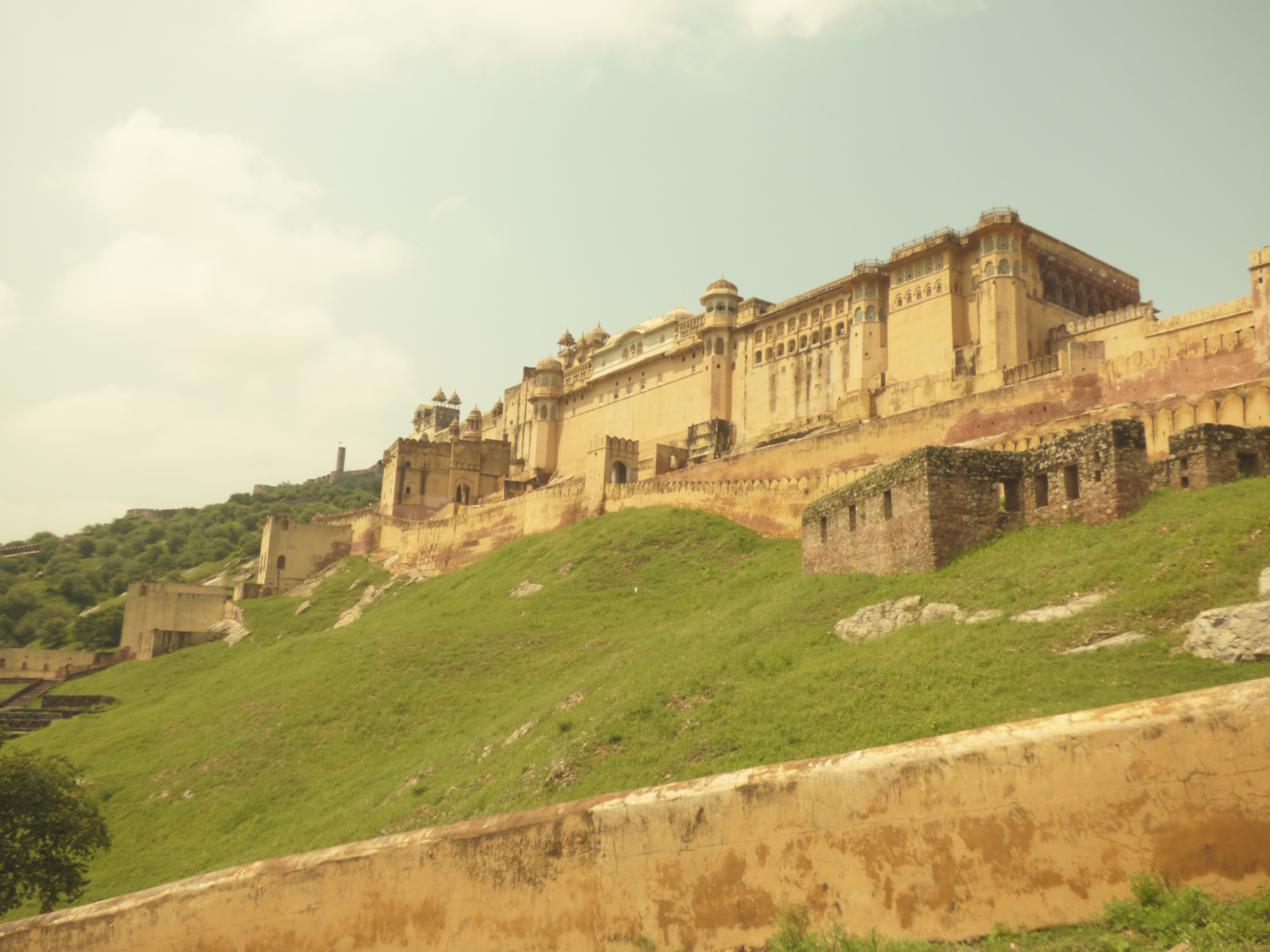 Un día visitamos el Fuerte de Amber; sus palacios interiores y también la la inexpugnable fortaleza Jaigarh. Una larga muralla que atraviesa colinas, el cañón con ruedas más grande del mundo, templos… ¡Merece la pena!. De vuelta aprovechamos para visitar Nahar Garh, un fuerte al cual se accede por un serpenteante camino muy pronunciado. Sudamos lo nuestro para subir hasta el fuerte pero las vistas de toda Jaipur son espectaculares y si se acompaña de una cerveza bien fría es aún mejor 😉