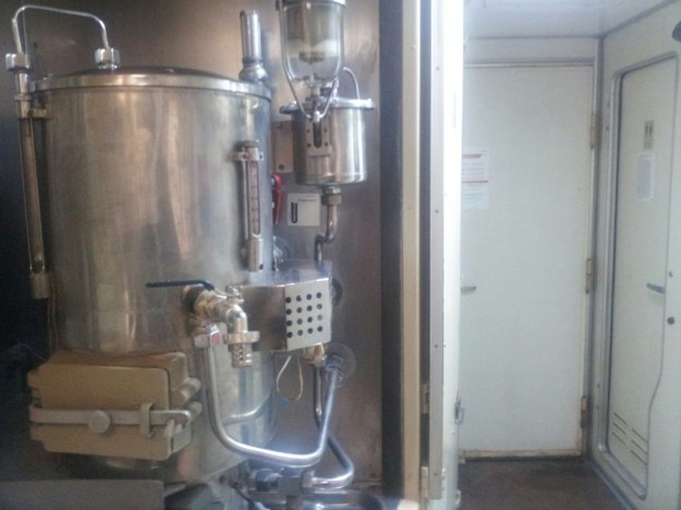 La piedra angular de la alimentación en el tren es el SAMOVAR. Se trata de un dispensador comunitario de agua caliente. Hay uno en cada vagón y aunque originalmente se usaba para preparar té, ahora los pasajeros lo utilizan para su comida deshidratada como noodles o purés de patata instantáneos.