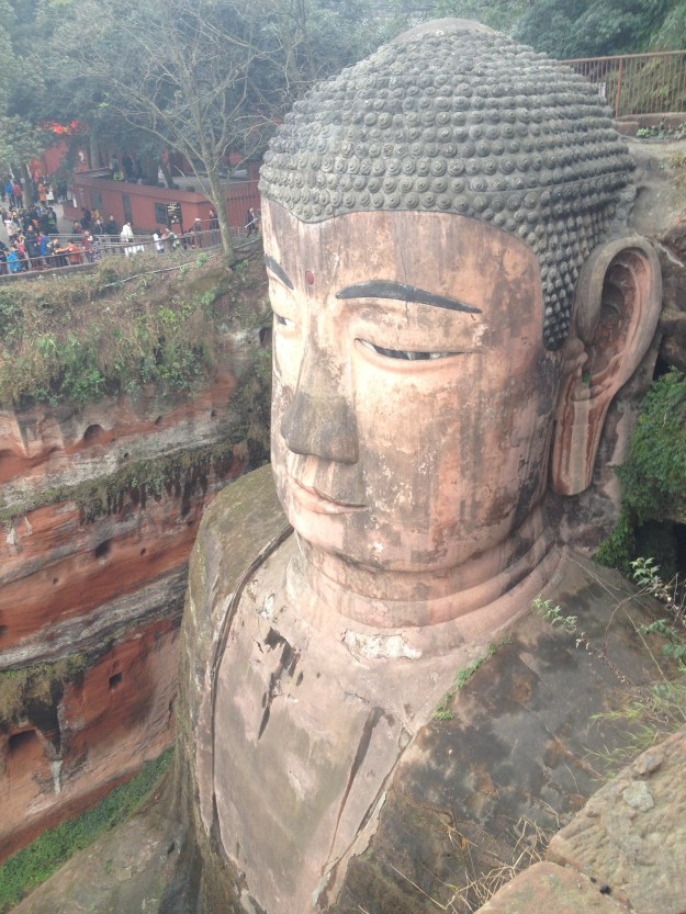 3- El Gran Buda de Leshan: A dos horas en autobús de Chengdú (precio del trayecto 50Y) se encuentra la ciudad de Leshan. Esculpido en los acantilados quedando a los ríos mide la asombrosa altura de 71 metros, siendo así el buda de piedra más alto del mundo. La entrada cuesta 90/45Y e incluye la visita un templo. Primero se asciende y se contempla el Buda desde su cabeza para luego descender hasta sus pies por unas escaleras y contemplarlo en todo su explendor.