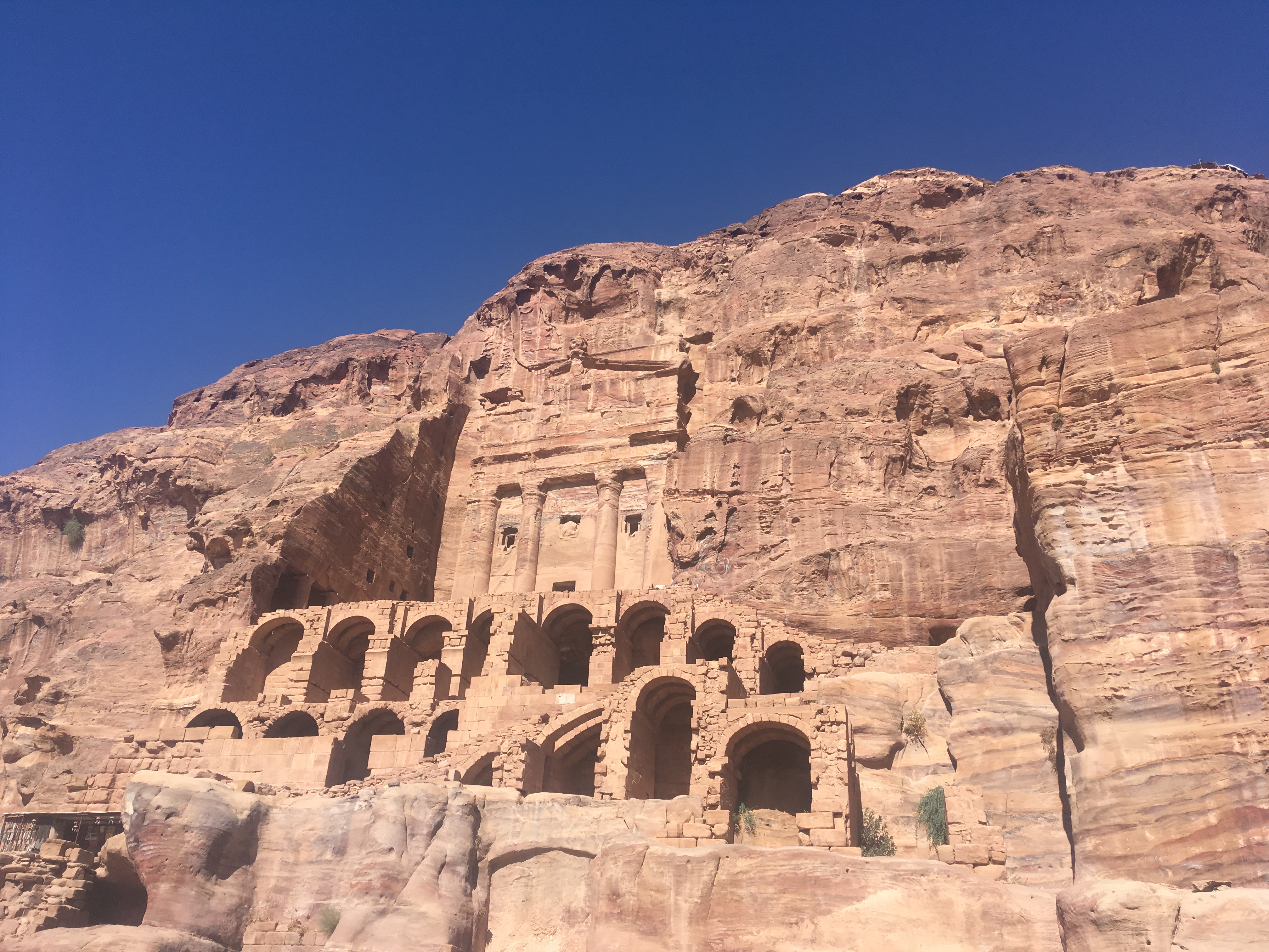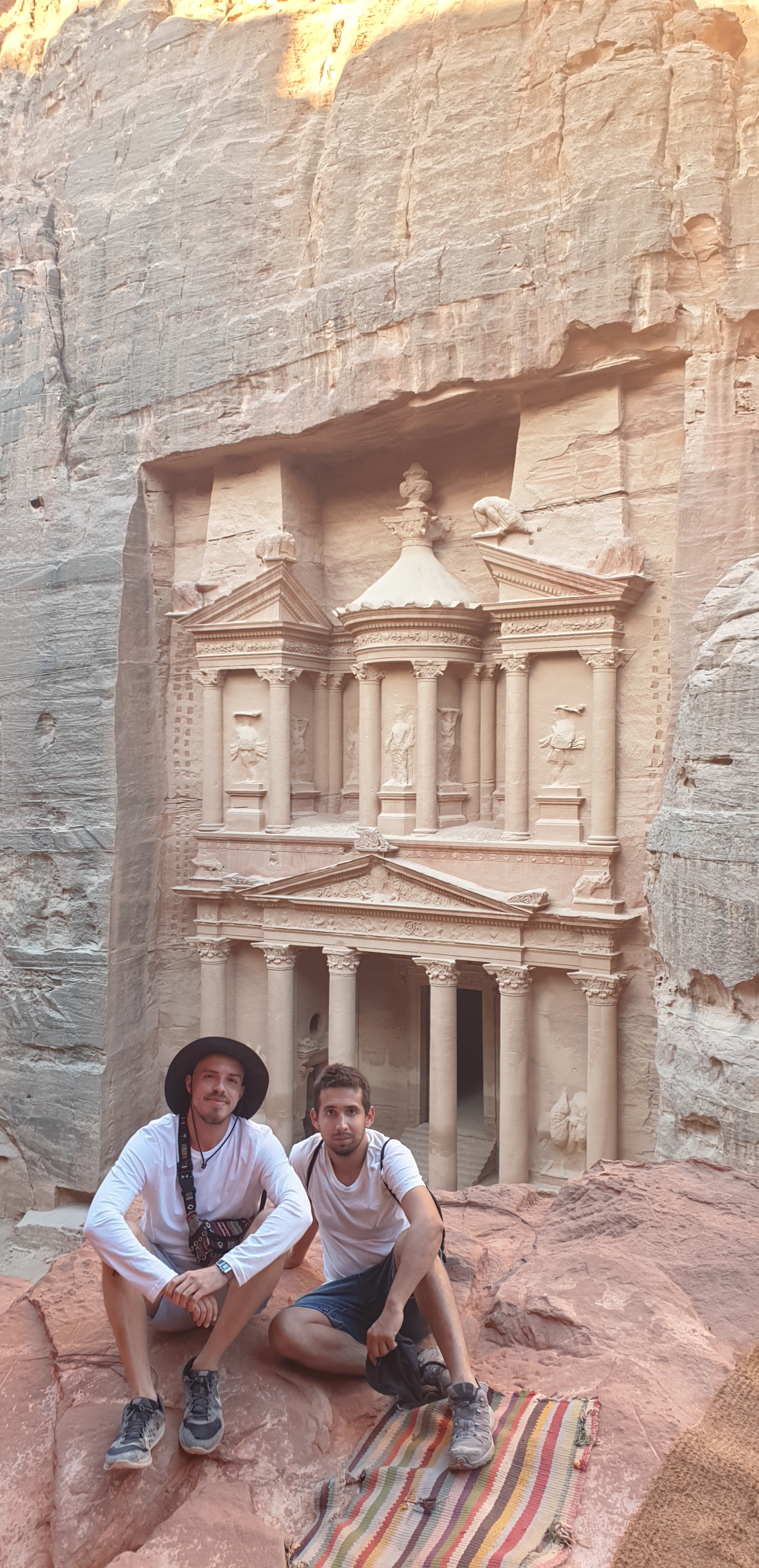 La antigua capital de los nabateos y una de las siete Nuevas Maravillas del Mundo Moderno es probablemente la imagen más conocida de Jordania. El «Tesoro» que es la imagen de Petra más emblemática es sólo la primera construcción que el visitante encuentra después de recorrer el desfiladero que lleva a la ciudad. La historia de Petra es muy interesante: en el siglo I los romanos tomaron la ciudad (que en ella habitaban unas 30.000 personas) a los nabateos. Posteriormente pasó a estar bajo el control de los bizantinos antes de ser prácticamente destruida por un terremoto. Siglos después la tomaron los cruzados y finalmente pasó a manos sarracenas antes de que cayera en el olvido. A pesar del devastador terremoto se conservan los restos de construcciones: el templo, el teatro o la iglesia además de diferentes tumbas como «El Tesoro» o espacios excavados en las montañas dónde habitaba gente. El precio de la entrada varía en función si se quiere visitar uno, dos o tres días consecutivos. Visitar Petra es una experiencia fascinante, fue lo mejor de Jordania. Al ser una ciudad entre montañas es evocador explorarla poco a poco y la afluencia de gente no es un problema excepto en «El Tesoro». Si se quiere llegar al Altar de los Sacrificios y al Monasterio además de ver como es debido todos los otros puntos de interés un día es insuficiente porque hay que subir centenares de escalones y caminar unos cuantos kilómetros.