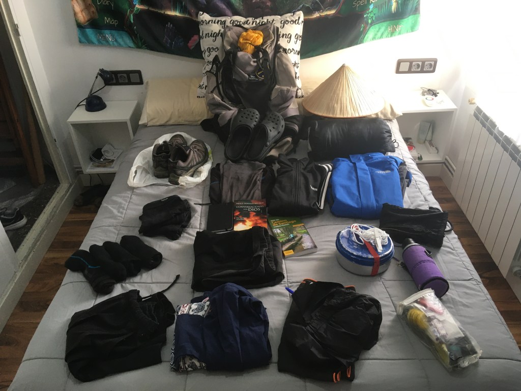 Es uno de los elementos más importantes a tener en cuenta antes de empezar el camino. La parte positiva es que si se comenten errores en este aspecto se pueden enmendar con facilidad. Obviamente el equipaje dependerá de la época en que se realice el camino y a su vez de la cantidad de días que tengamos pensado dedicarle. En general la regla que establece que el peso máximo sea un 10% del peso corporal me parece muy sensata y llevar un total de tres mudas (la que se lleva puesta y dos más) me parece adecuado.