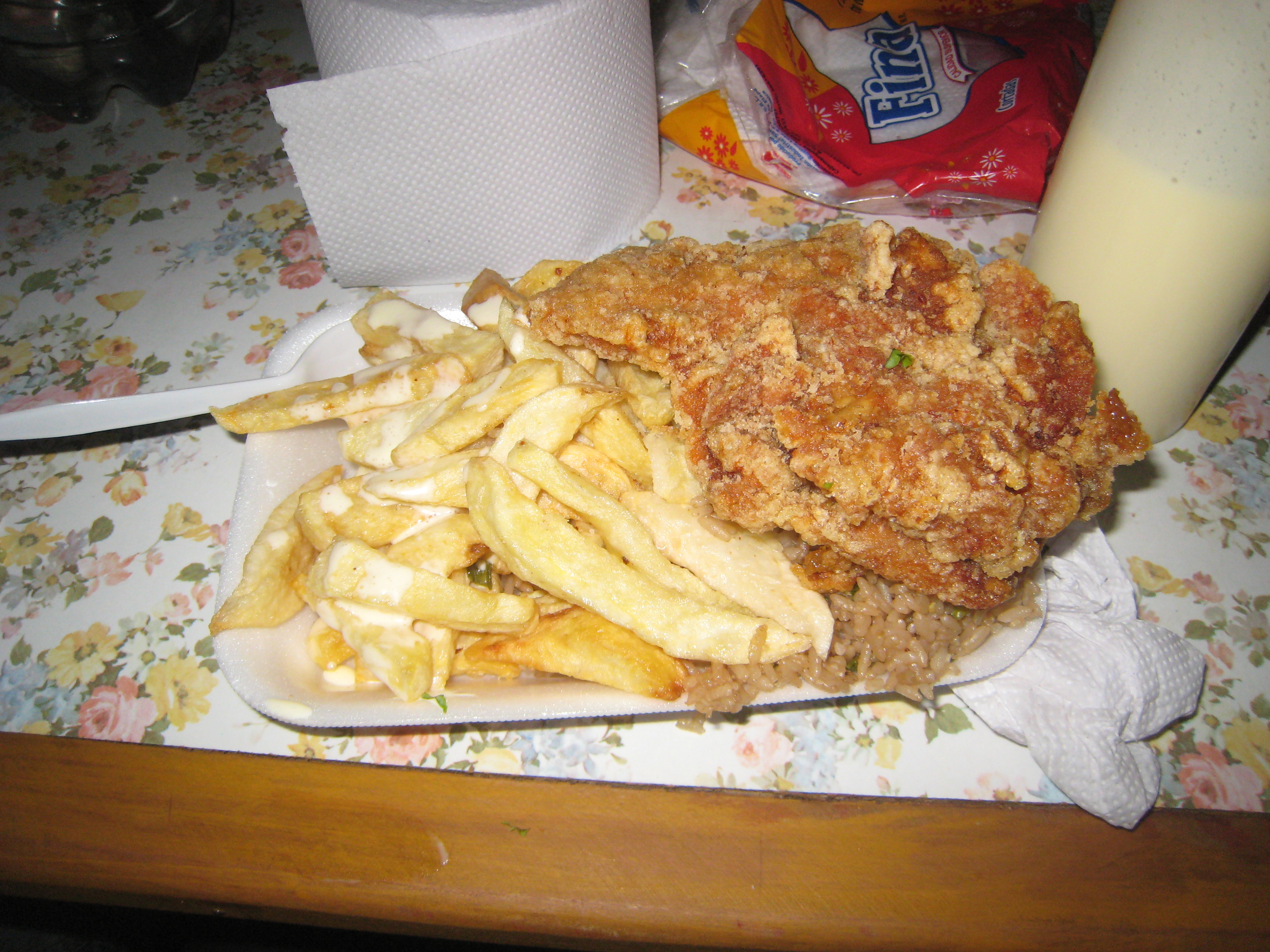 Pollo y arroz frito con patatas (Nazca, Peru)